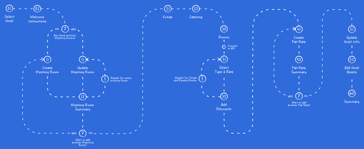 Expedia’s Meeting Market is a MICE platform that provides easy booking of hotel accommodations and meeting rooms at the same time. In order to simplify and speed up the initial data compilation of hotels and their facilities, catering and equipment, an onboarding process that is integrated into the existing back-office solution was planned and executed.