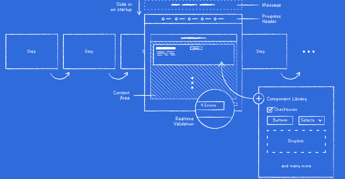 Providing a highly flexible framework was challenging for the design process as well as the creation of a proper application workflow. In order to preserve agility, a flexible validation process and deeplinking, we’ve set up a backbone.js application and created a straight sequence of actions that'll be executed during the process of every single step and allow modifications and reordering of the steps within the blink of an eye.